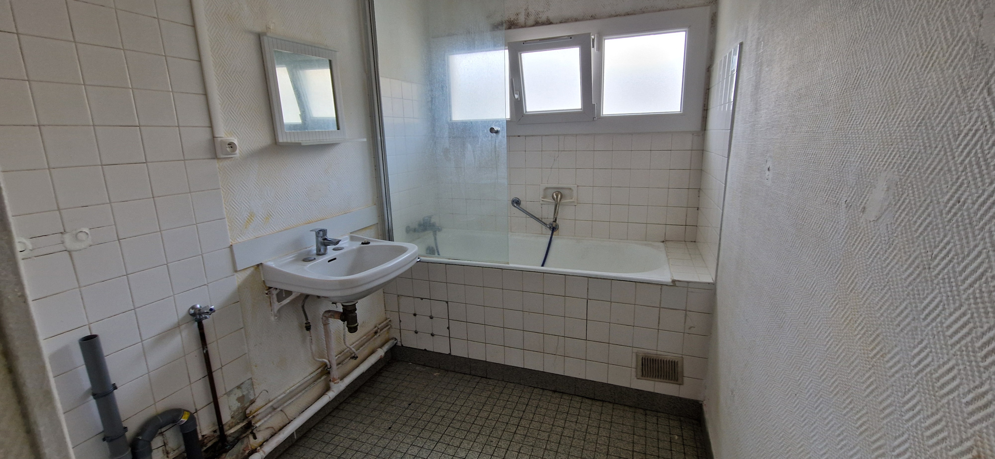 Bd Jean Jaurès à Clermont-Fd – Appartement entièrement à rénover (l’électricité est aux normes) – Séjour double sur balcon – Cuisine à équiper sur petit balcon – 2 chambres – Dégagement avec rangements – Salle de bains – WC séparé. Chauffage collectif avec répartiteurs individuels. Cave et garage.