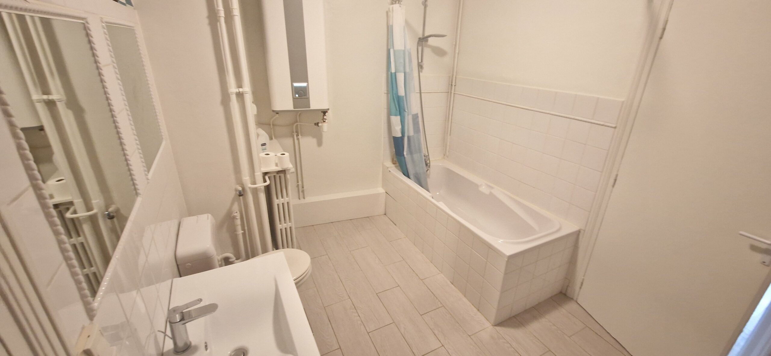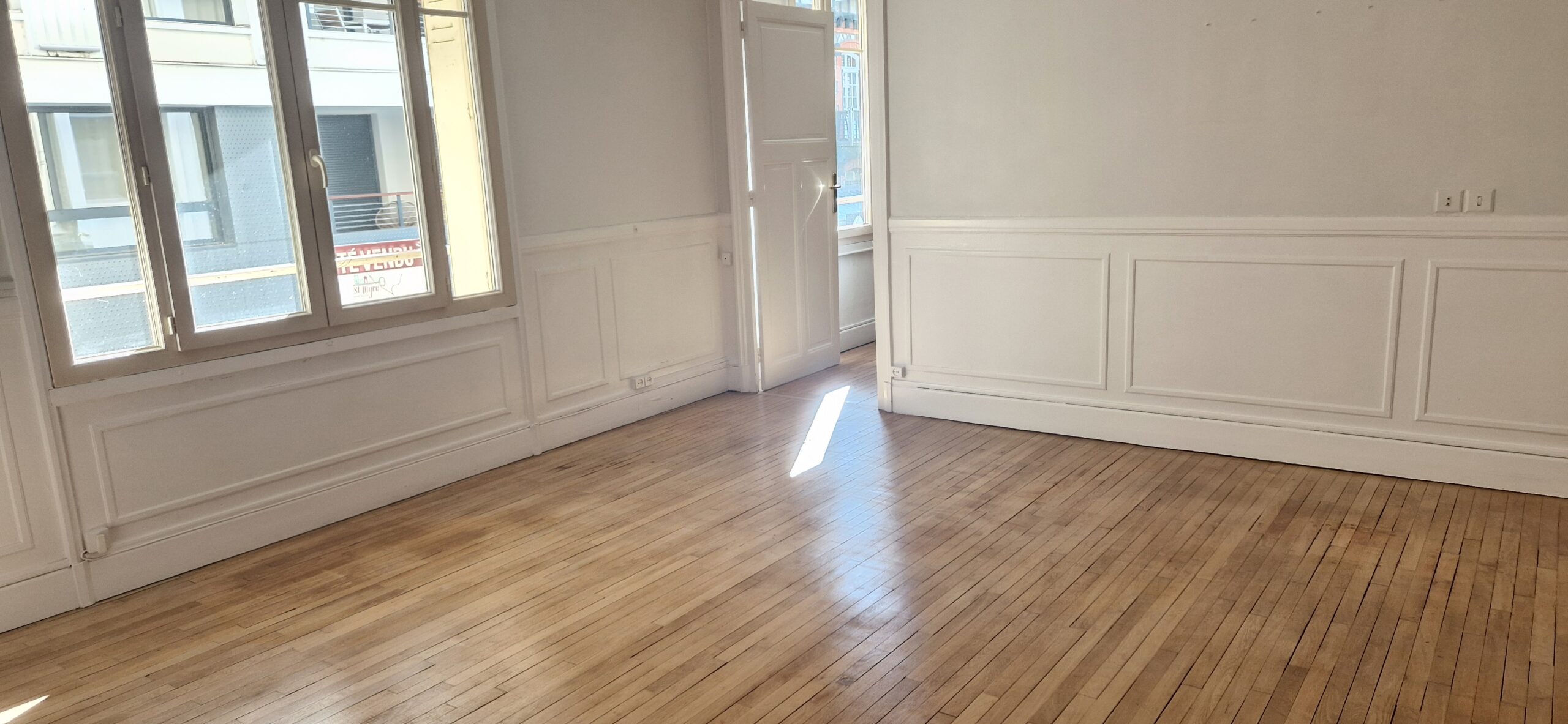 Centre-ville – Bonnabaud/Blatin . Au 1er étage avec ascenseur – Large dégagement d’entrée – 2 salons qui peuvent être reliés en une seule grande pièce (utilisés jusqu’à ce jour en cabinet médical et salle d’attente) – Cuisine qui donne sur un petit extérieur – 2 chambres – 1 salle de bains avec WC – WC séparé – Placards. Une chambre de bonne au dernier étage et une cave complètent l’appartement. Fenêtres double vitrage – Charges de copropriété :182€ par mois chauffage compris (Chauffage collectif avec répartiteurs individuels) .