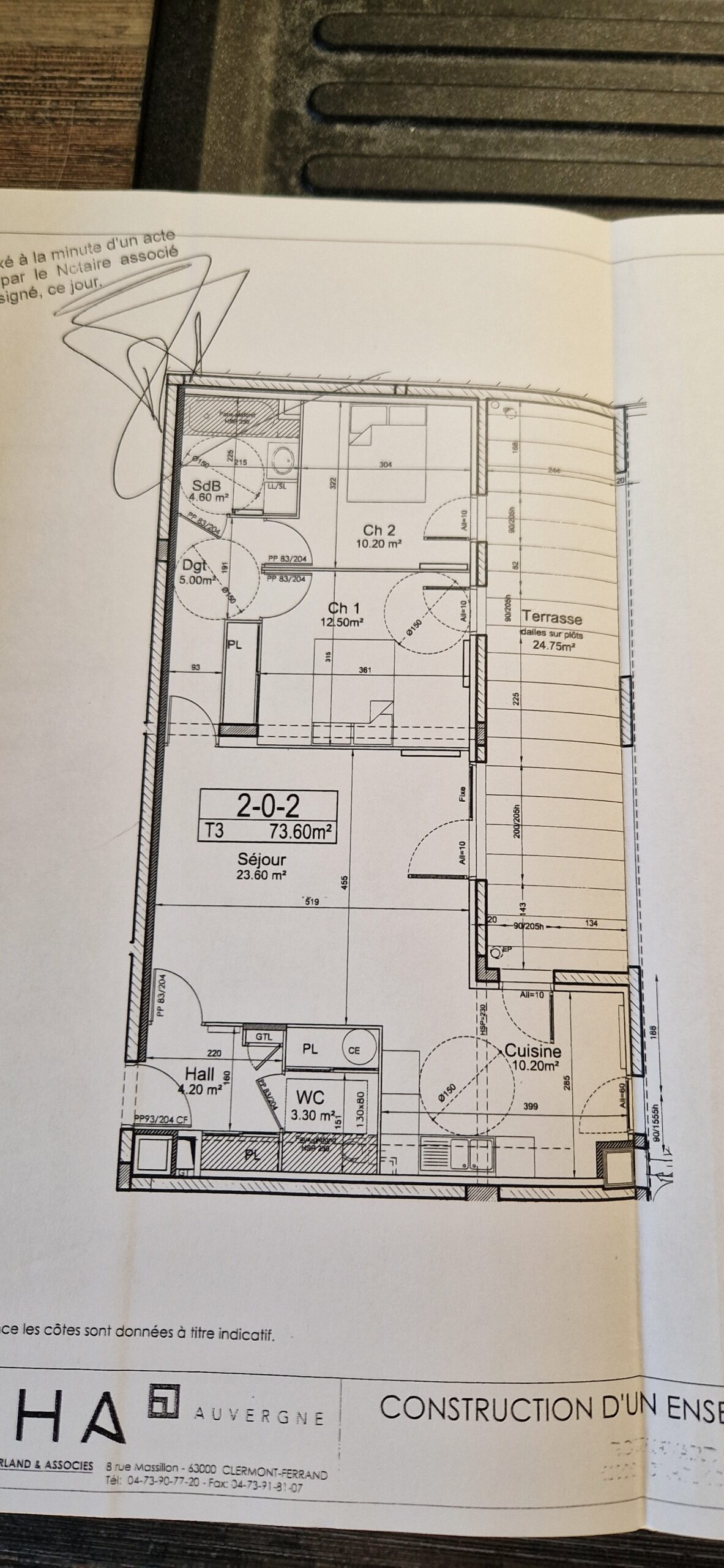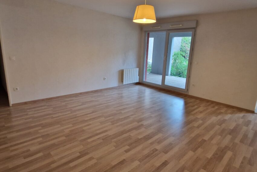 Quartier Lavoisier – Dans un immeuble qui ne donne pas sur la rue – Appartement 73 m² – Séjour avec cuisine ouverte en accès direct sur la terrasse de 24m² – 2 chambres – salle de bains – WC séparé – Entrée et dégagement avec placard – Garage individuel. Chauffage individuel électrique.