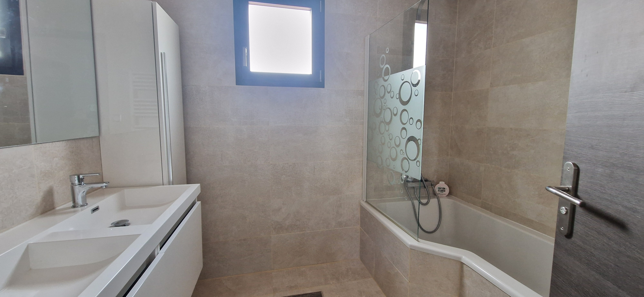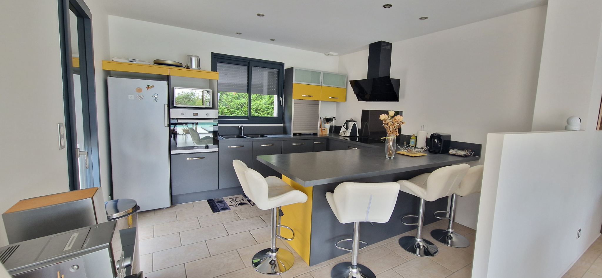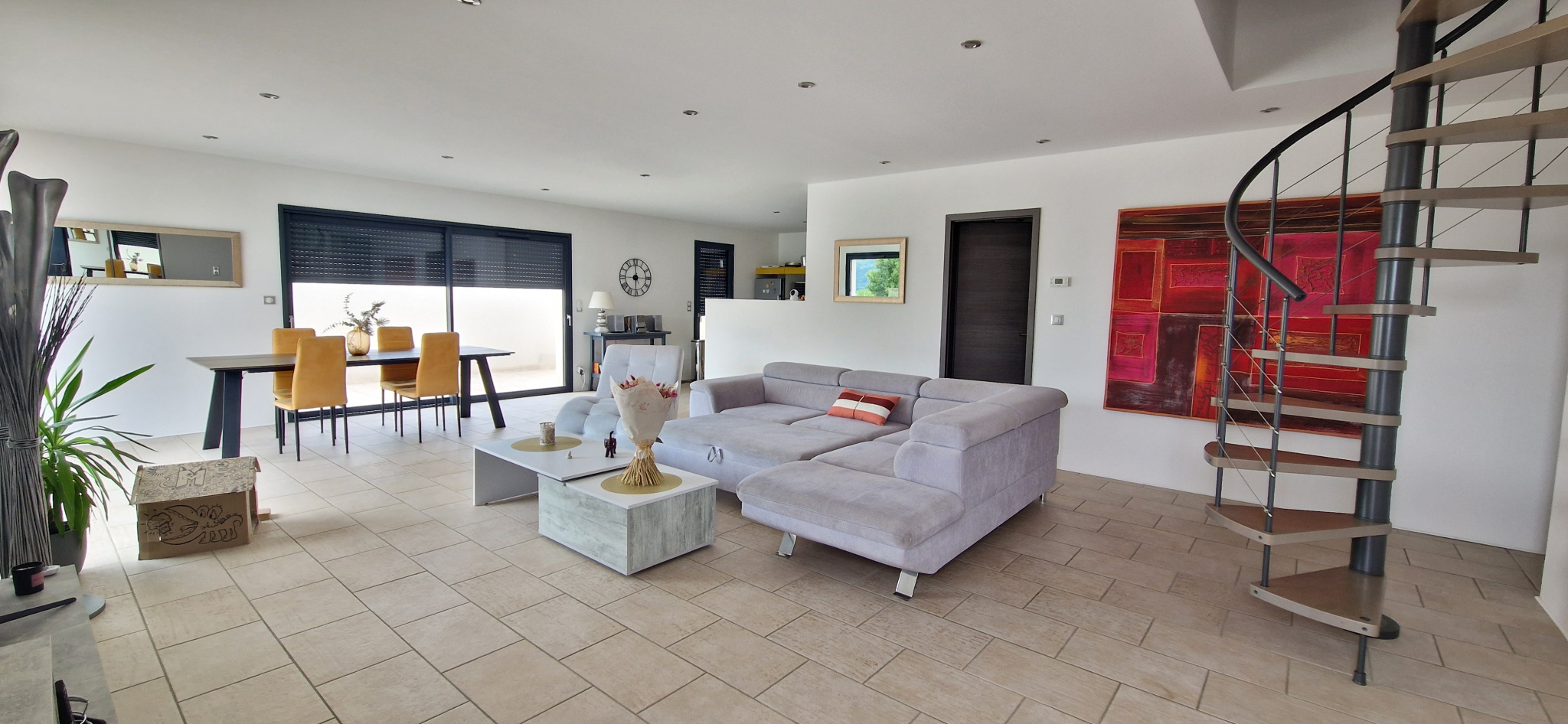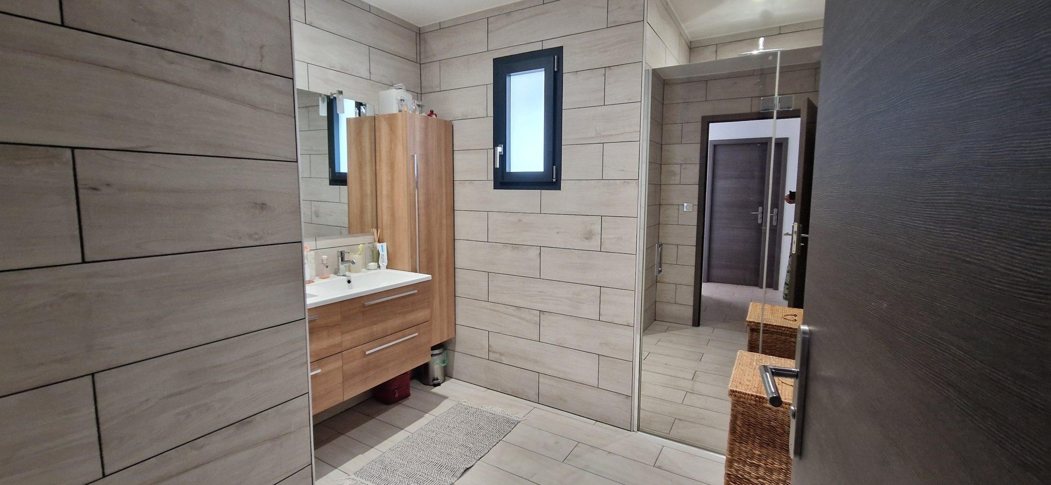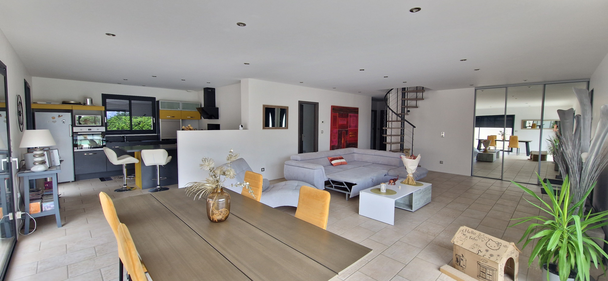 Au sud de Clermont-Fd sur la commune du Crest – Maison individuelle contemporaine (construction 2019) – 160 m2 – En rez de chaussée vous trouverez une pièce de vie de plus de 65m2 avec cuisine ouverte entièrement équipée en accès direct sur la terrasse (100m2) – 2 chambres – 1 salle d’eau – 1 WC – 1 espace lingerie-dressing – 1 buanderie et un garage de 17m2. A l’étage 2 chambres – salle de bains – WC. Piscine chauffée avec volet roulant motorisé et bâche d’hiver – Chauffage au sol avec pompe à chaleur air/eau avec option rafraichisseur – Fenêtres alu avec domotique SOMFY.
