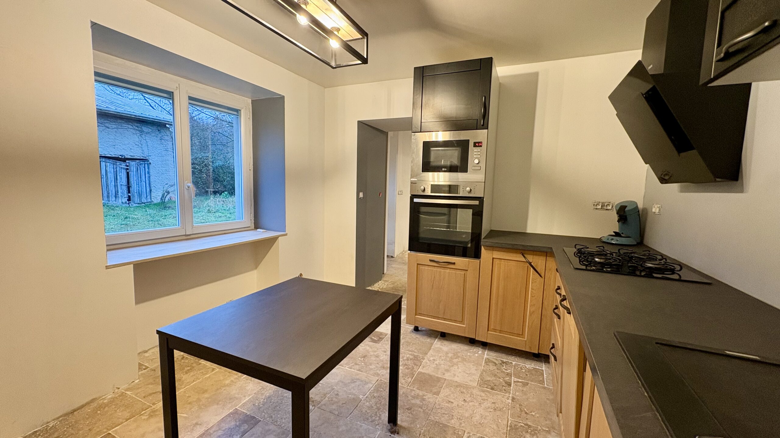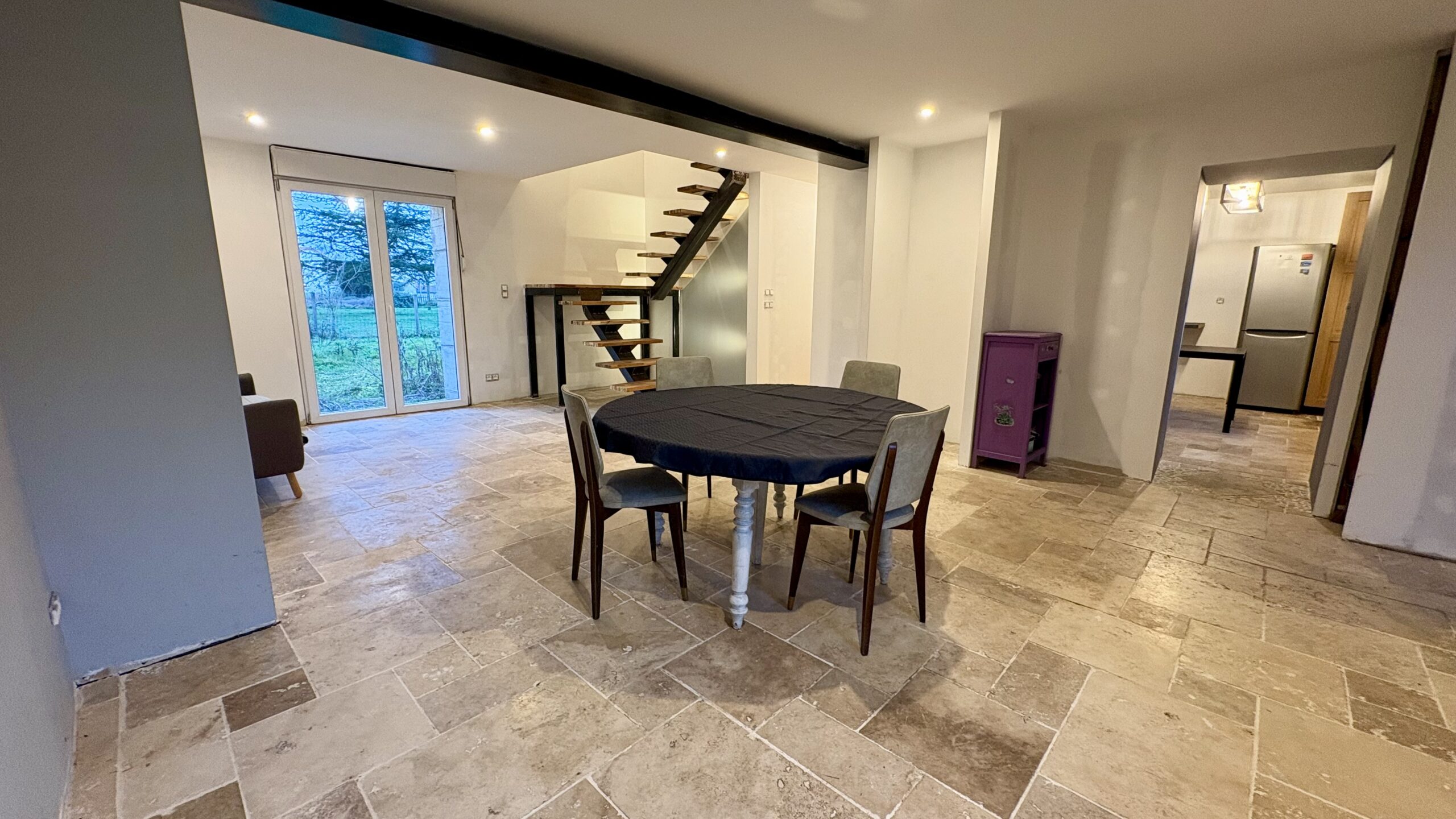 La maison principale, d’une surface habitable d’environ 105 m², propose des volumes agréables et une distribution fonctionnelle. Elle se compose notamment de trois chambres et offre une base saine à finir de rénover, principalement sur les finitions et aménagements intérieurs.
