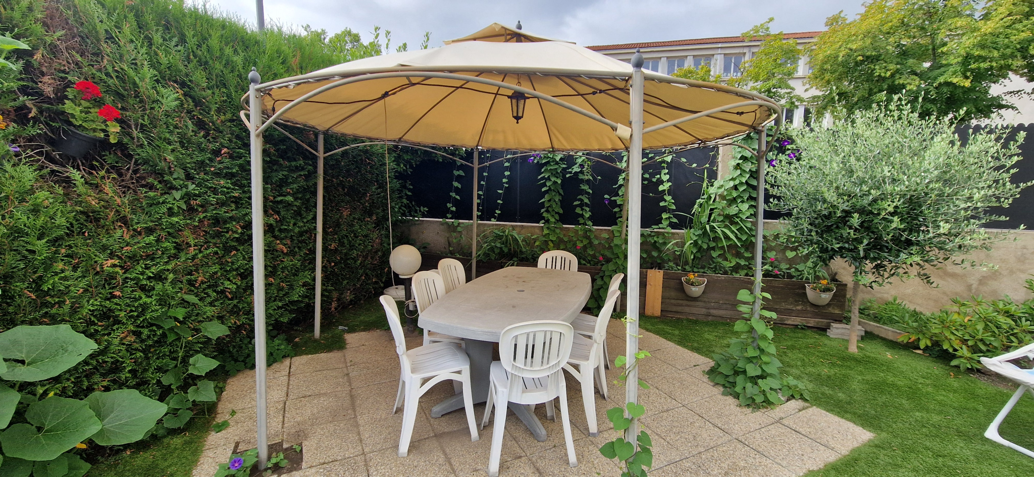 Maison individuelle avec jardin et véranda : Au niveau principal, séjour double, cuisine, chambre, salle d’eau et WC séparé. En rez de chaussée : entrée, chambre, buanderie avec douche et WC, véranda et garage avec porte motorisée. Une cave en sous-sol. La véranda de 19m2 avec point d’eau vous apporte un espace complémentaire en accès direct sur le jardin. Chauffage individuel gaz + blocs de climatisation dans le séjour et la chambre principale. A l’extérieur vous bénéficierez d’un espace agréable avec une terrasse ombragée par une gloriette. Un four à pain et un abri de jardin complètent l’extérieur. Quartier : Avenue du Limousin.