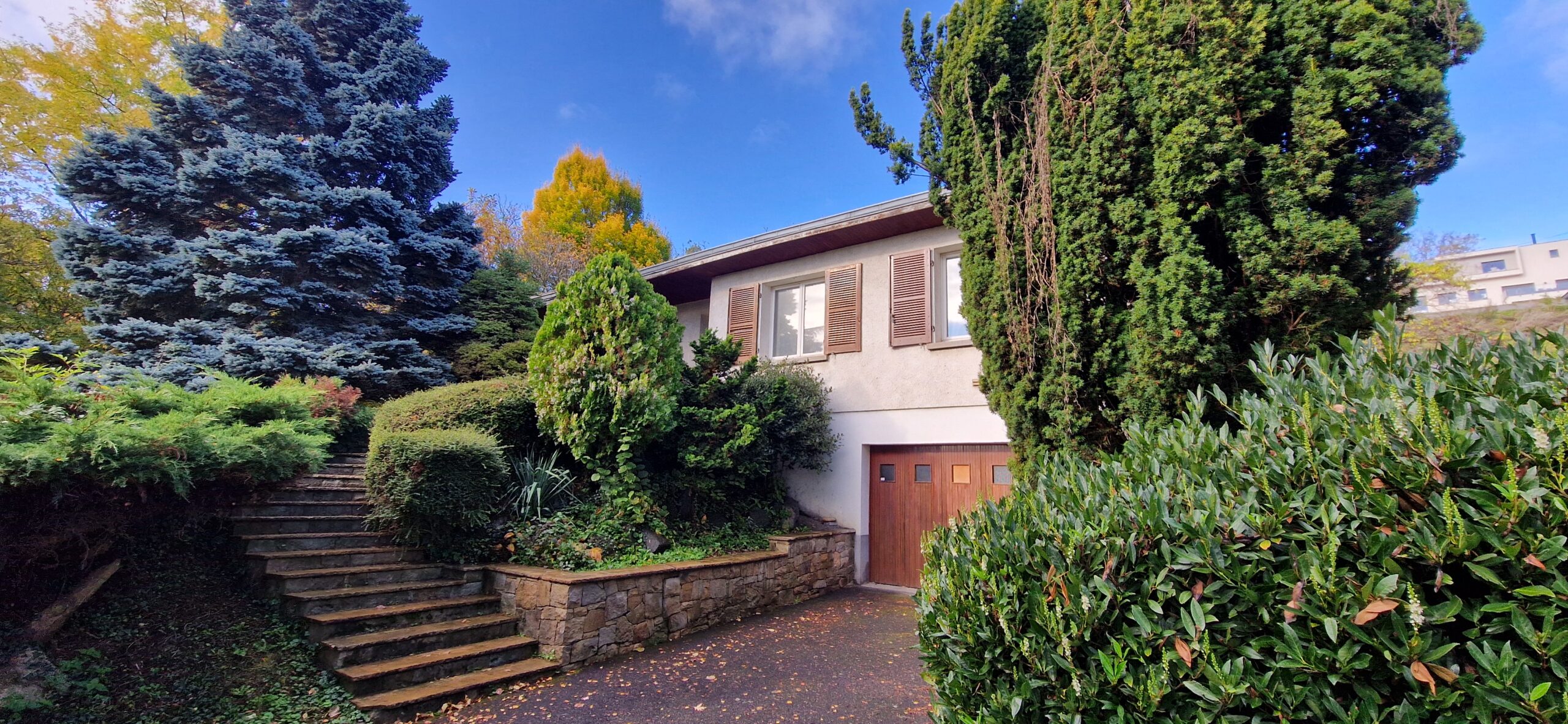 Maison individuelle des années 70 implantée sur une belle parcelle de plus de 1000m². Au niveau principal: séjour double avec cheminée à foyer ouvert – cuisine – 3 chambres – salle de bains et WC- En sous-sol : 2 pièces qui peuvent être transformées en chambre – grand garage avec espace buanderie – cave. Il faudra prévoir des travaux pour mettre en valeur le charme de cette maison.